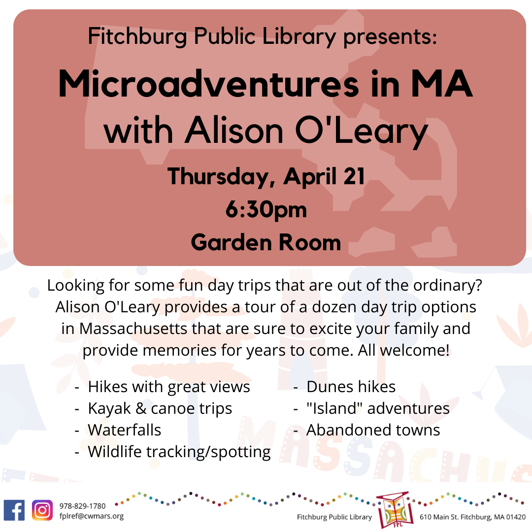Looking for some fun day trips that are out of the ordinary, or opportunities to introduce younger family members to short experiences to test the waters? Join us at the Fitchburg Public Library (Garden Room) for this free, in-person event! Experienced hiker and outdoorswoman Alison O'Leary provides a tour of a dozen day trip options […]