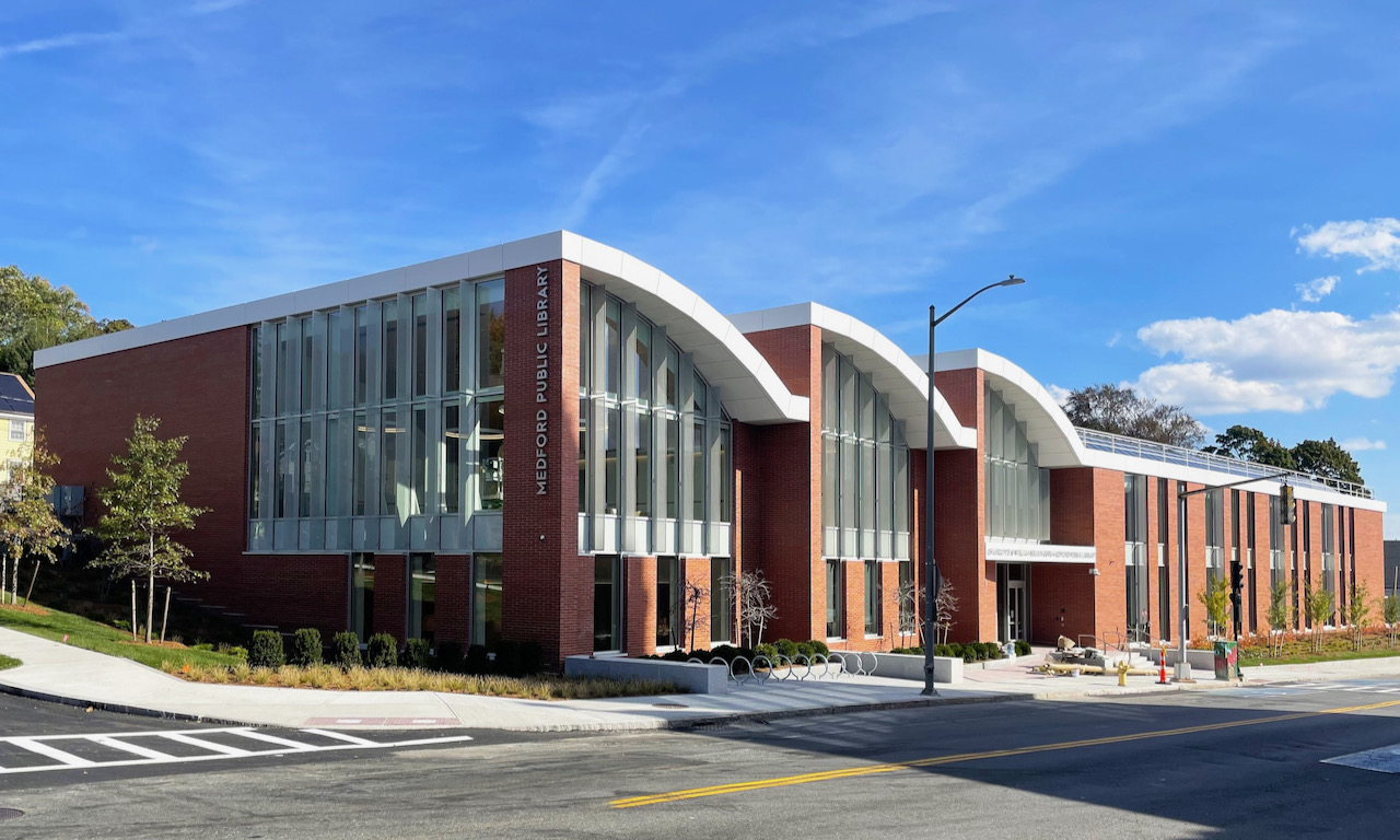 The new building nearly doubles the library’s usable square footage and improves accessibility, noise, design, and technology issues. The Charlotte and William Bloomberg Medford Public Library has cutting-edge technology, and is fully ADA compliant, energy efficient, and LEED certified.