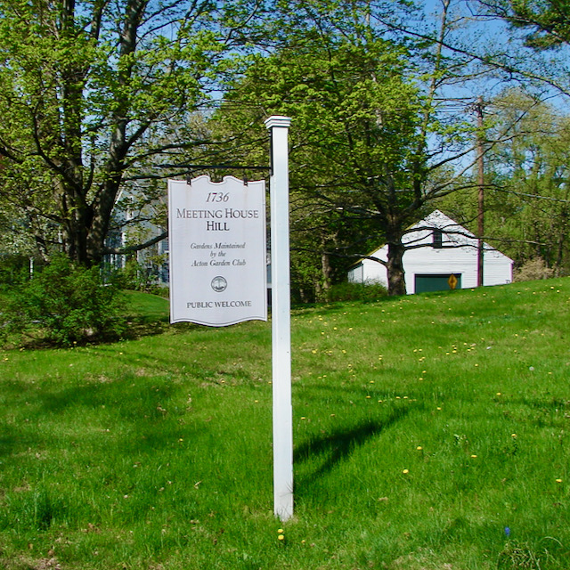 Built in 1737, Acton’s first meeting house was located here and served not only as a place of worship, but also a home to democracy, for more than seventy years. Following contentious debate resulting in the decision to build a second meeting house at the location of the current Town Hall, successive schoolhouses were erected on Meeting House Hill. Demolition of the Acton Centre School in the early 1960s left the site a pile of rubble and weeds, prompting the Acton Garden Club to spearhead a campaign to beautify, preserve, and honor this tangible piece of history.